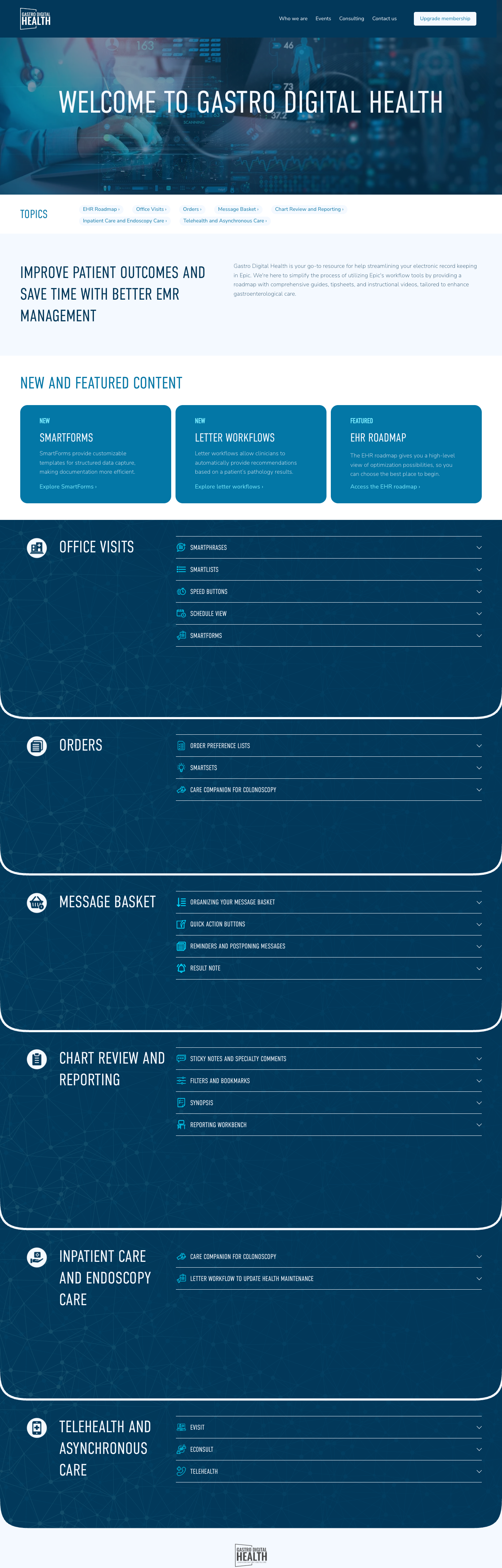 Gastro Digital Health is a member-based education site for medical professionals specializing in Gastroenterology, who want to make the most of the efficiency resources within the Epic electronic health record platform. Patients know this system as MyChart — the colloquial name for the portal many of us use to manage physician visits, prescriptions, lab orders, and more. The platform is extremely powerful, allowing clinicians and their organizations to automate record keeping, but it can be daunting for users who are less comfortable with EHR systems. Gastro Digital Health produces videos, tutorials, info sheets, webinars, and more to help clinicians leverage Epic to decrease administrative load for their staff, minimize errors in patient records, and ultimately spend more time with their patients and less time on paperwork.
